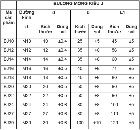 2. Thông số kỹ thuật của bu lông móng