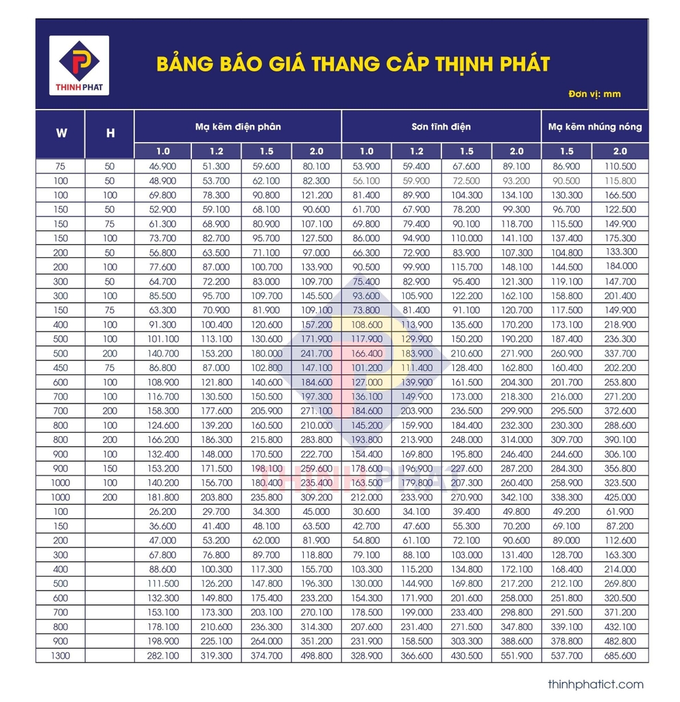 Để nắm được những thông tin chi tiết, mời bạn đọc cùng tìm hiểu qua bảng giá các loại thang máng cáp dưới đây của Thịnh Phát!