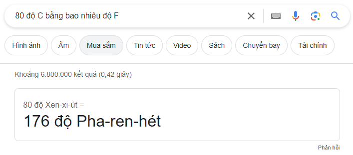 Nếu không muốn tự tính toán bằng công thức hay dùng bảng tra cứu, bạn hoàn toàn có thể sử dụng đến các công cụ tìm kiếm để chuyển từ độ F sang độ C hoặc ngược lại. Đây được xem là cách nhanh và đơn giản nhất mà ai cũng có thể làm được.