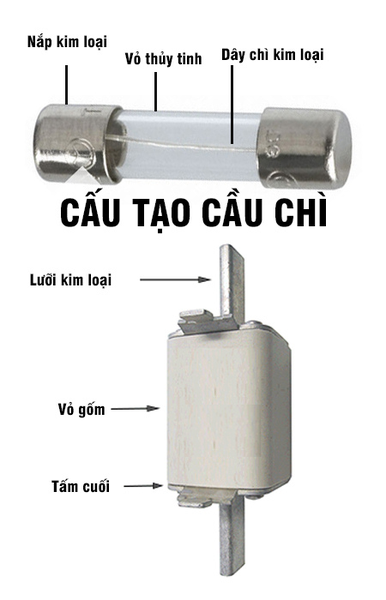 - Sợi dây chì dẫn điện (hay còn gọi là bộ phận ngắt cầu chì)