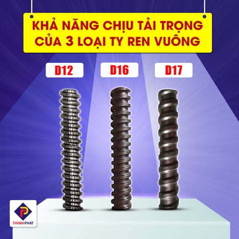 Khả năng chịu tải trọng của 3 loại ty ren vuông D12, D16, D17