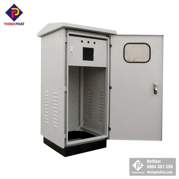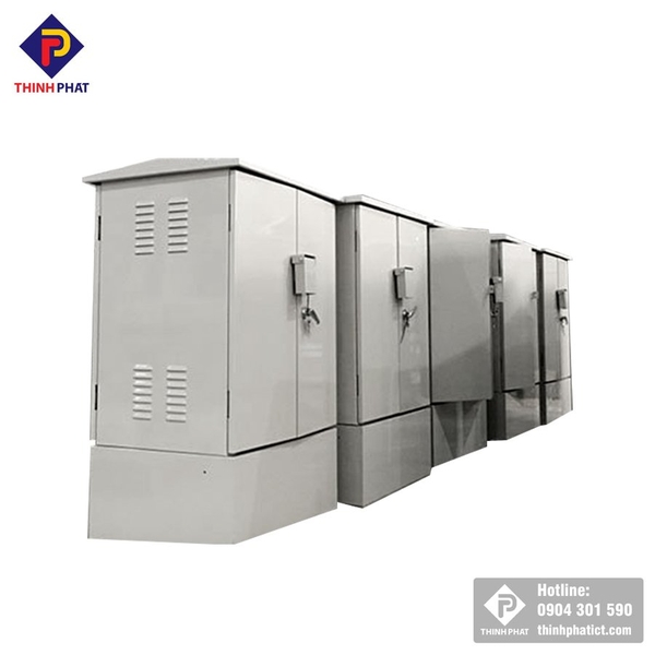 - Vỏ tủ điện ngoài trời: Có chân đế cao đặt trên nền, hoặc có tai treo trên cột, có mái dốc nước.